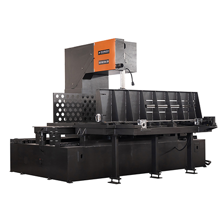 机头移动型是大型、重型立式带锯床的典型结构,专为处理超大、超重工件而设计。工作台固定不动,整个带锯机头沿着导轨精确地移动,穿过被固定在工作台上的工件。这种类型立式锯床适合处理重型工件。