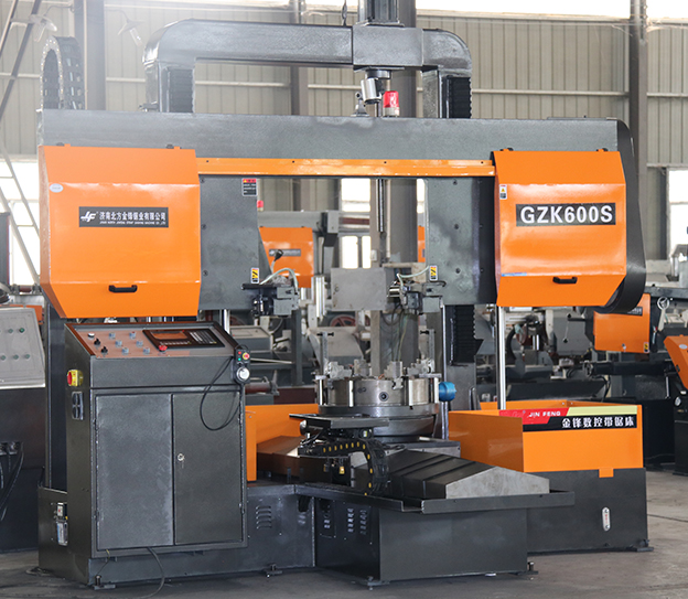 金锋锯业平竖两切带锯床的产品型号有:GZK4230/40-45、GZK600S、GZK4250/-50、GZK1300、GZK1000S、GZK85-210、GZK40/70等。其中GZK600S带锯床配有旋转工作台,可适应异形工件加工,能灵活调整切割角度,确保锯片始终以最佳接触面切入,减少振动和锯痕,可以有效增加切割精度和切割效率。平竖两切带锯床结合了平切和竖切两种模式,适用于不同加工需求,可轻松应对复杂工件的横向、纵向切割需求,无需频繁更换设备,节省成本。